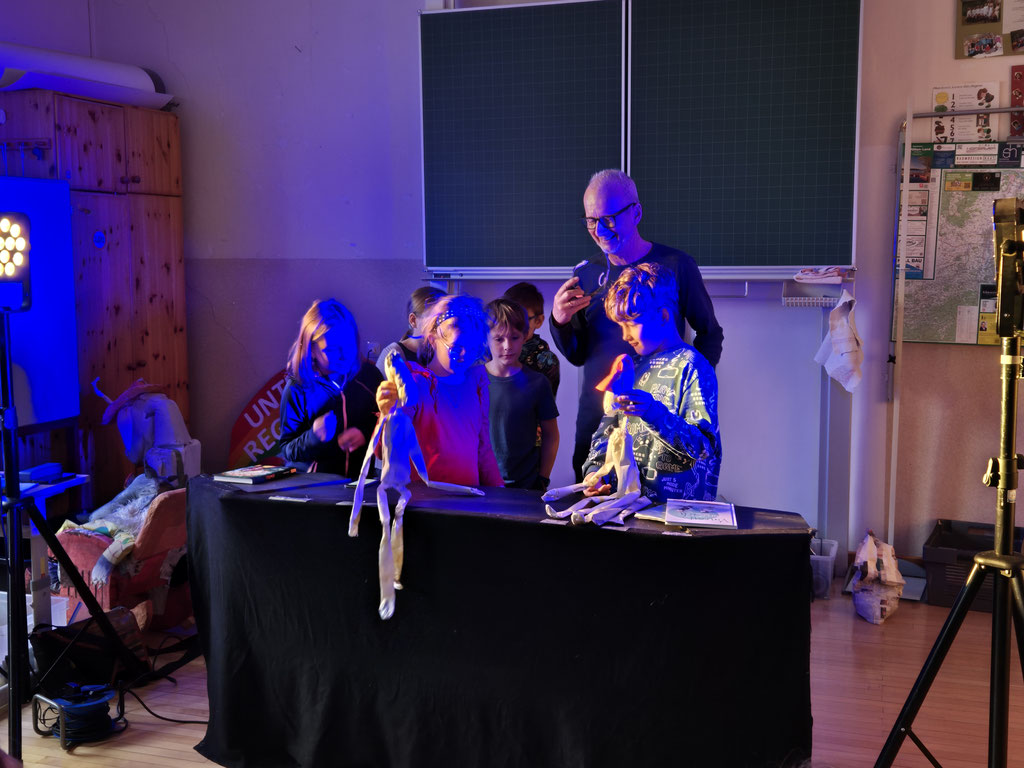Ein ganz besonderer Höhepunkt war, dass einige Schülerinnen und Schüler selbst aktiv mitmachen durften: Sie bekamen die Gelegenheit, die Puppen zu führen und sogar für diese zu sprechen. Es war beeindruckend zu sehen, wie schnell die Kinder in ihre Rollen schlüpften und zu einem Teil der Geschichten wurden.