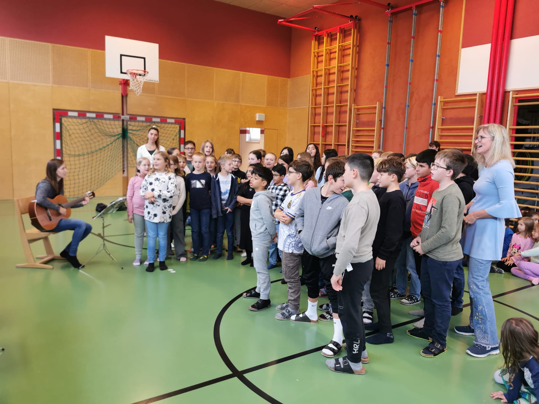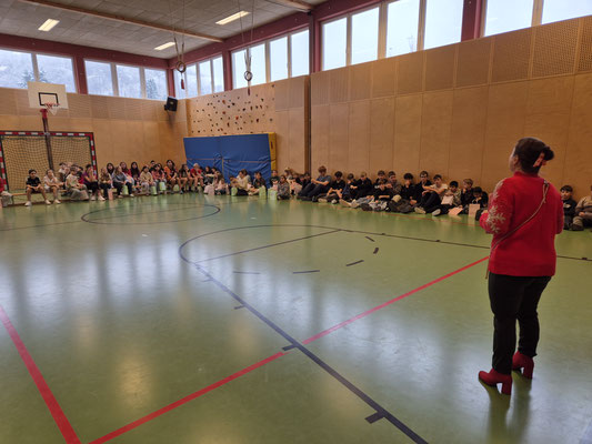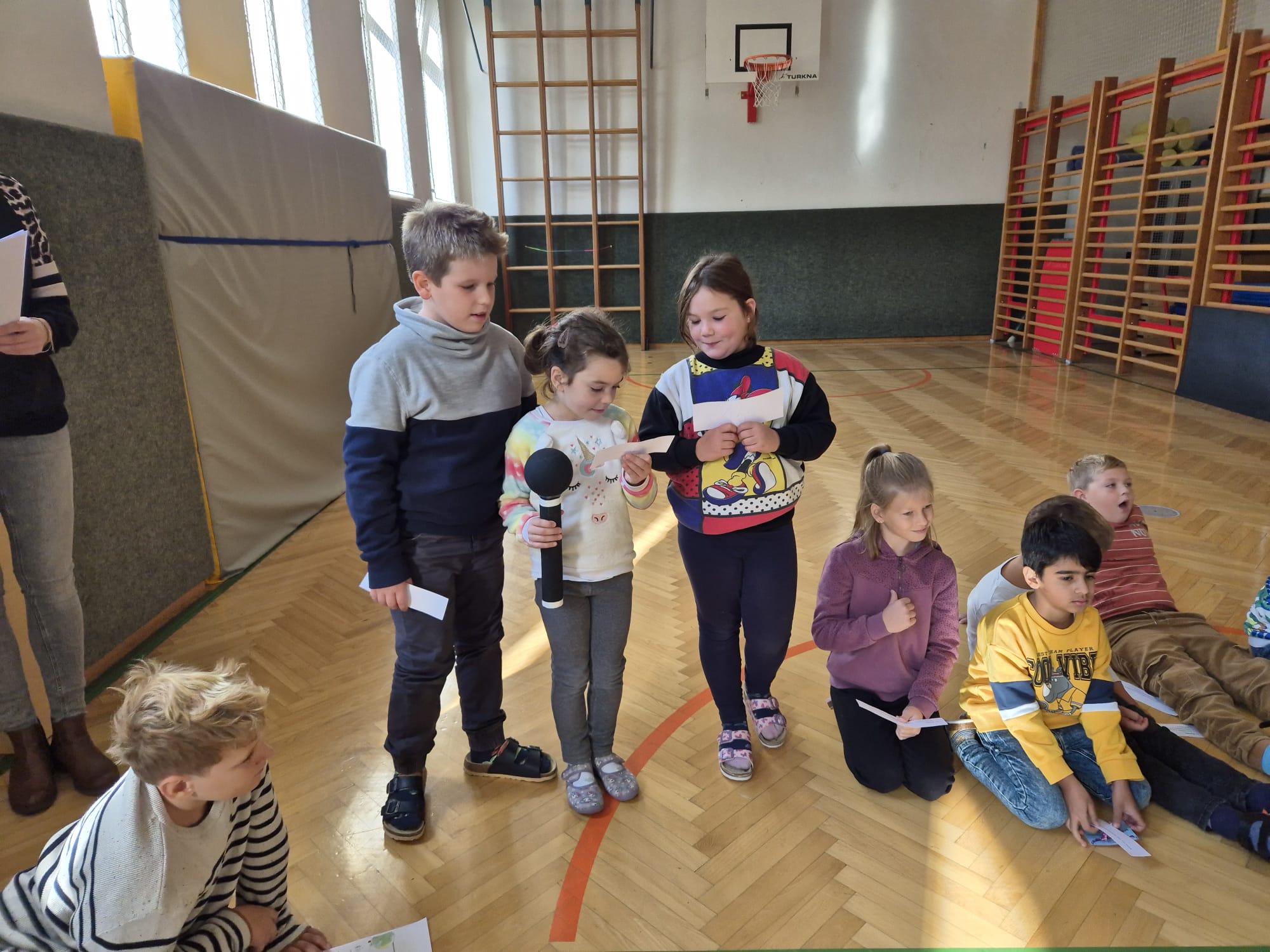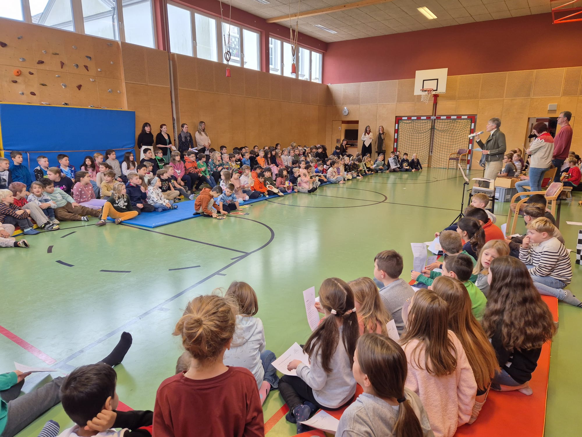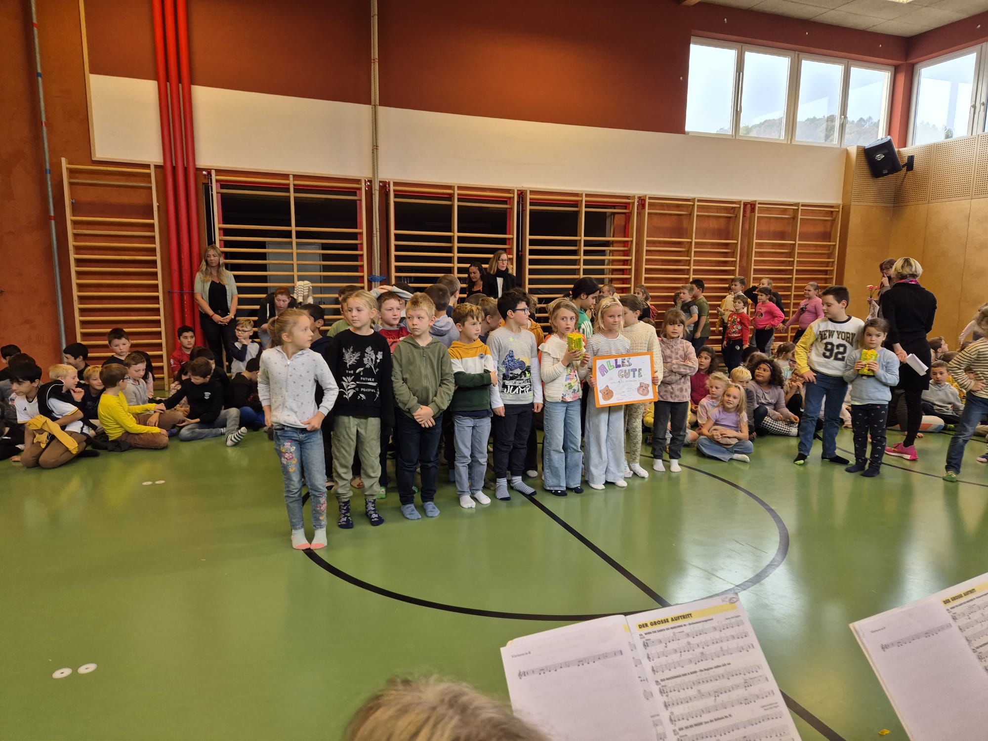 Bei der monatlichen Schulversammlung im November gab es wieder sehr abwechslungsreiche Beiträge der einzelnen Klassen. Durch die Versammlung führten die Kinder der 4. Klasse mit professioneller Moderation.