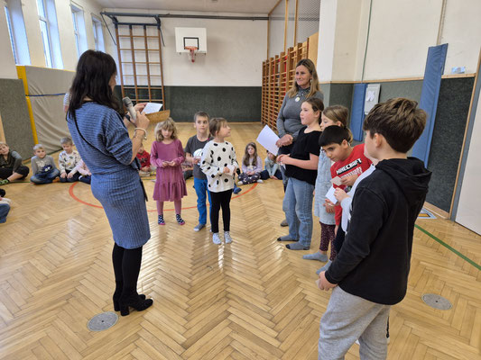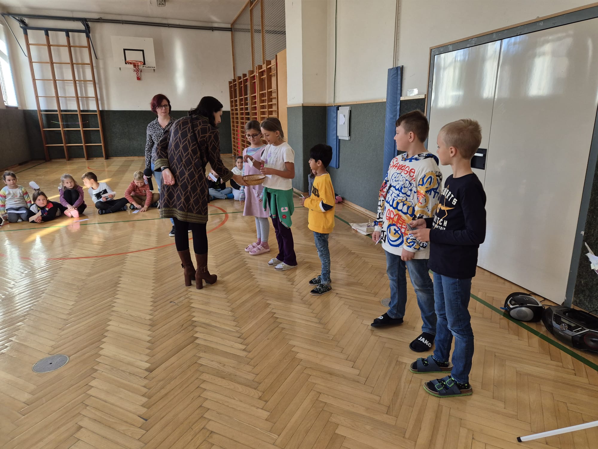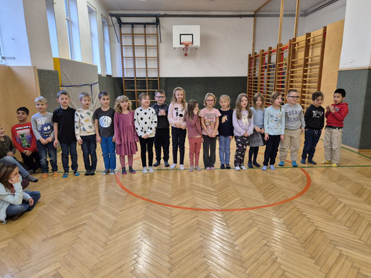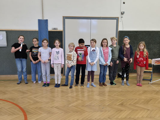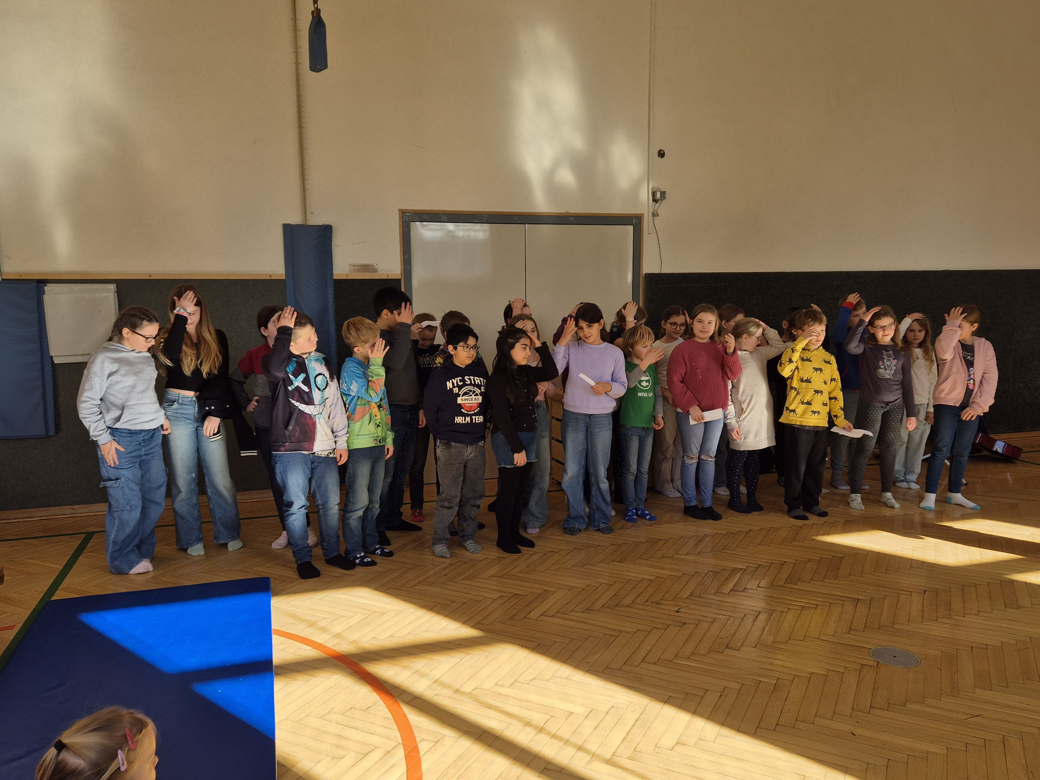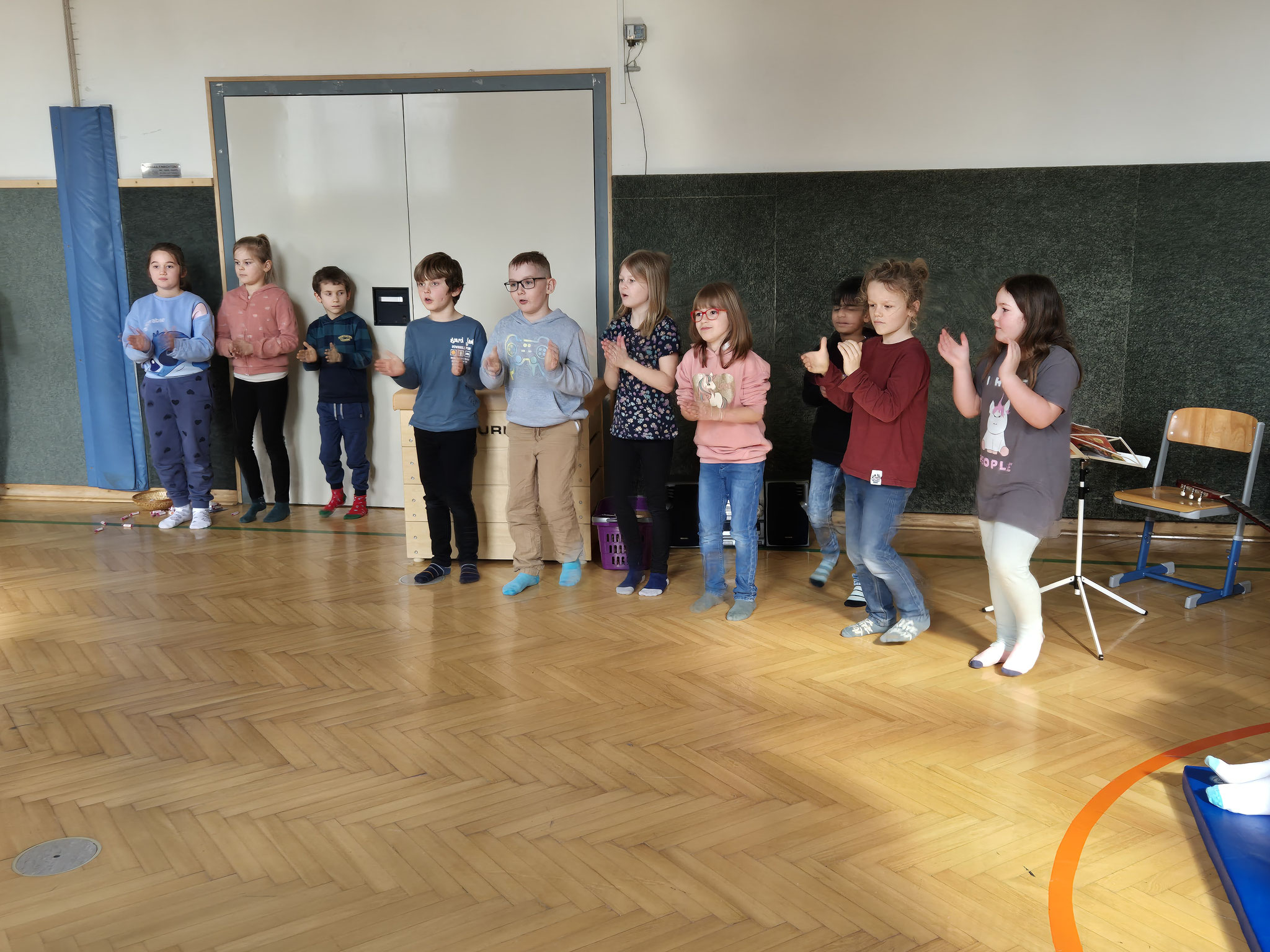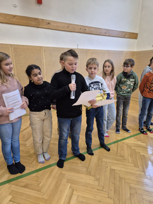 Gleich zu Beginn stimmte uns die 1. Klasse mit "Schneeflöckchen, Weißröckchen" auf die bevorstehende Winterzeit ein. Die Kinder der 2. Klasse präsentierten ihre Ergebnisse aus dem Mathematikunterricht. Die 3. Klasse trug ein herbstliches Gedicht vor und animierte alle für eine gemeinsame, kurze Sporteinheit. Die Personenbeschreibungen der 4. Klasse luden zum Mitraten ein.
