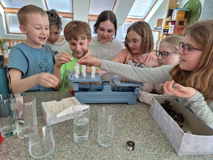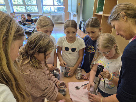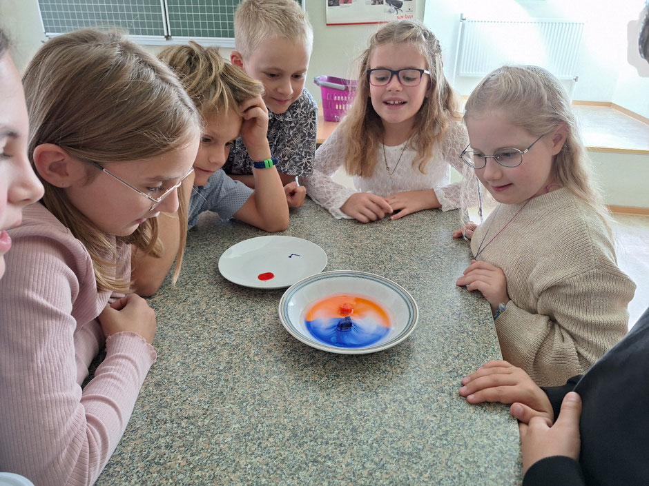 Erstmals wird in diesem Schuljahr in den 4. Klassen die unverbindliche Übung "Forschen" angeboten. Dabei lassen sich die Schülerinnen und Schüler nicht nur für das Durchführen und Beobachten von Experimenten begeistern, sondern sind auch mit Feuereifer dabei, wenn es darum geht, die Forschungsergebnisse auf Plakaten darzustellen. Bislang konnten die Kinder bereits herausfinden, welche Feststoffe sich in Wasser lösen und welche Bedingungen die Löslichkeit beeinflussen können. Außerdem konnten sie durch Papierchromatographie jene Farbstoffe voneinander trennen, die sich in Blättern befinden und dadurch den Mythos widerlegen, dass sie sich im Herbst bunt verfärben. Auf großes Interesse stieß auch die Klärung der Frage, was ins Abwasser gelangen darf und was mit dem Abwasser passiert, das jede Wilhelmsburgerin und jeder Wilhelmsburger tagtäglich produziert. Mit Hilfe einer selbstgebauten Becherkläranlage konnte jedenfalls der Reinigungsschritt der mechanischen Abwasserreinigung veranschaulicht werden.