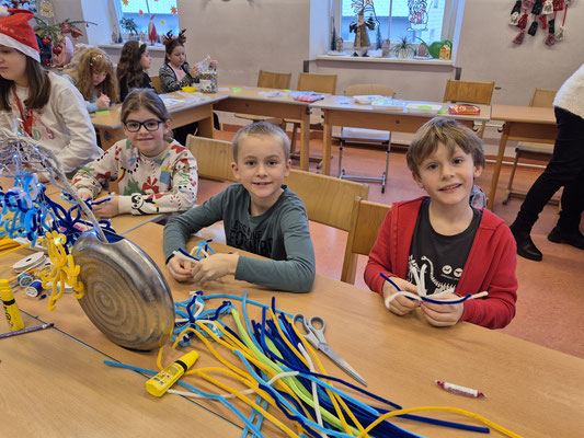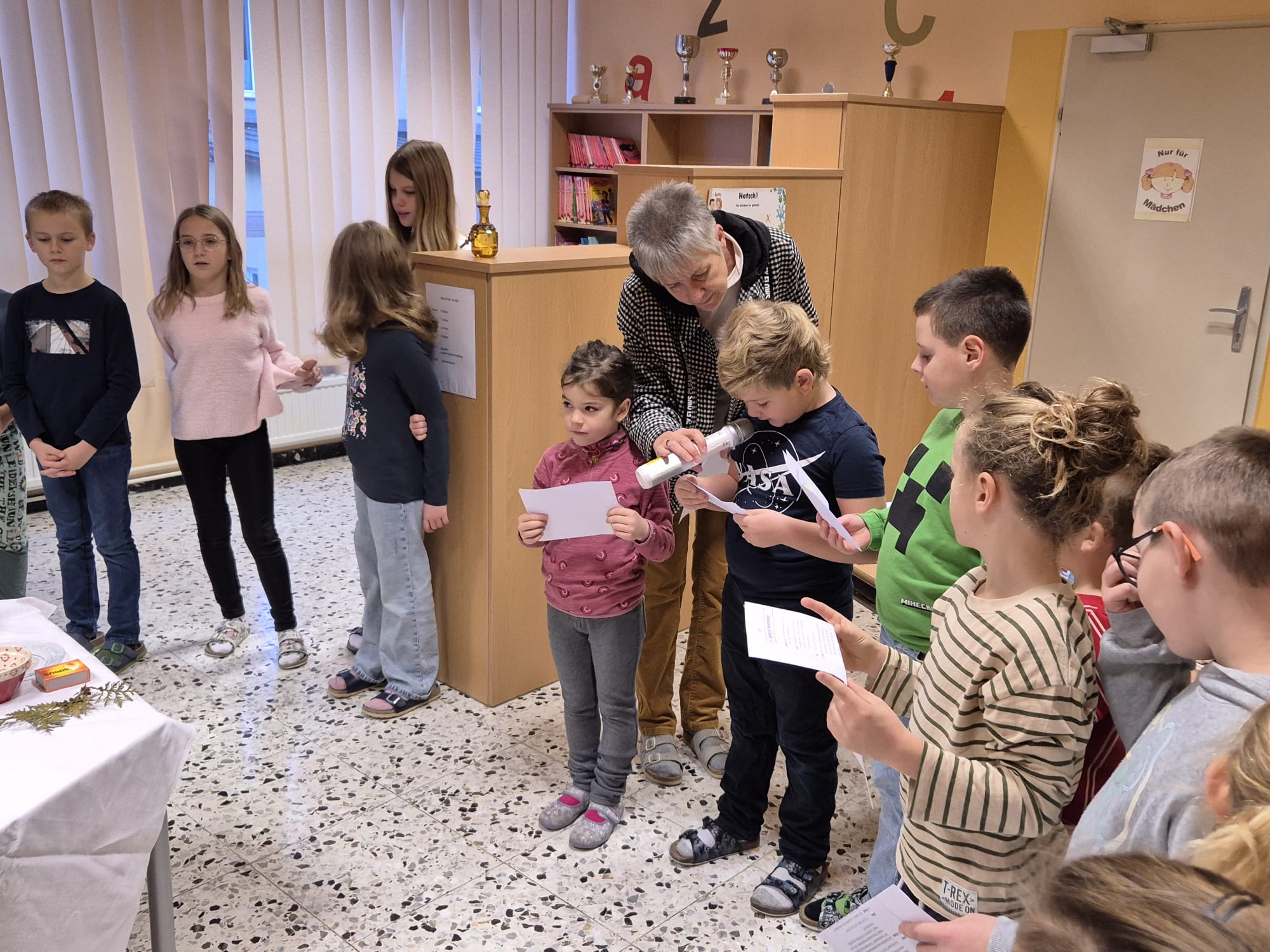 Die Beiträge der einzelnen Klassen sowie der Bläserklasse stimmten auf Weihnachten ein: Es wurden Weihnachtslieder gespielt und gesungen, Gedichte vorgetragen und Basteleien aus der Adventzeit vorgestellt.