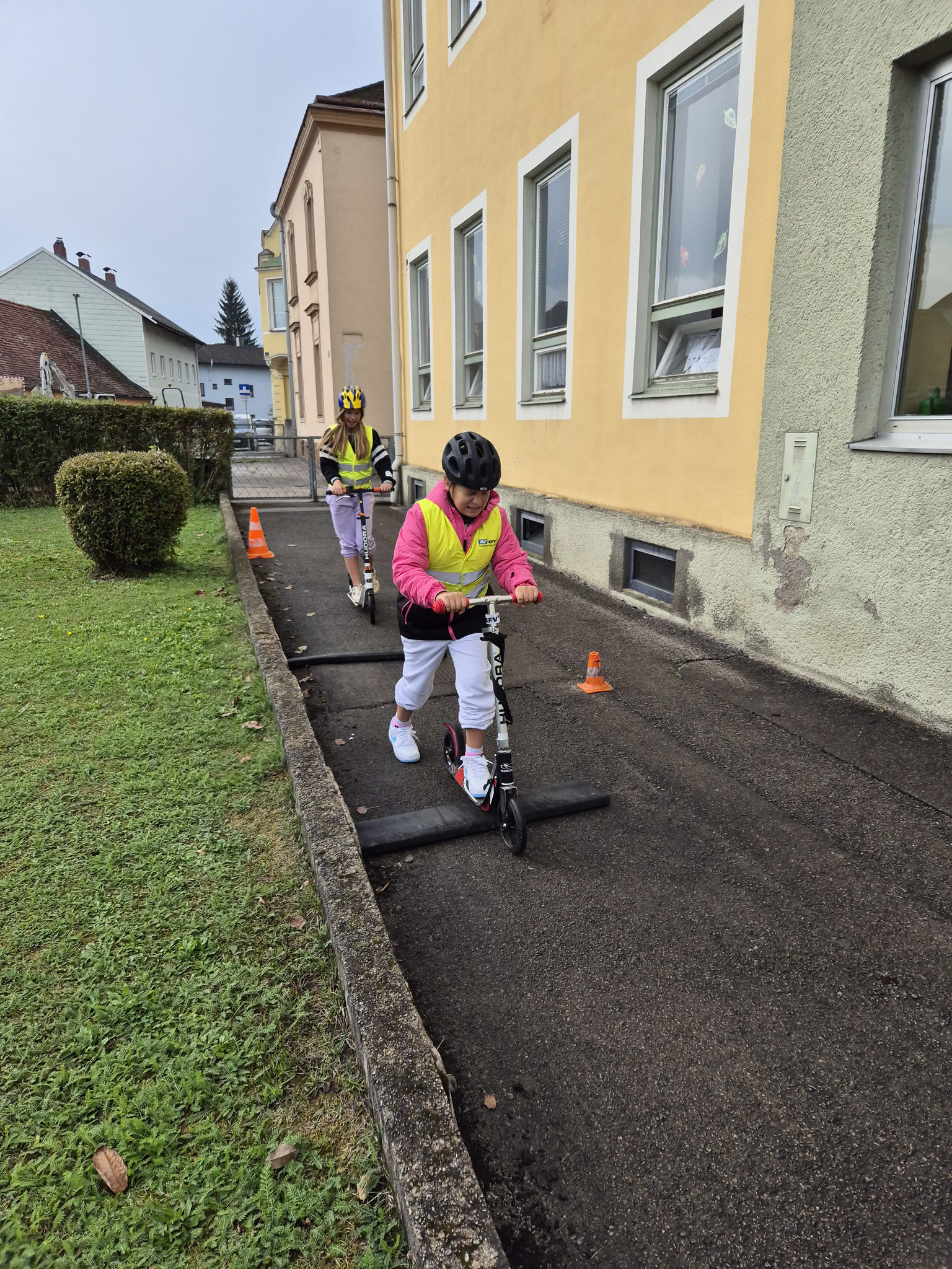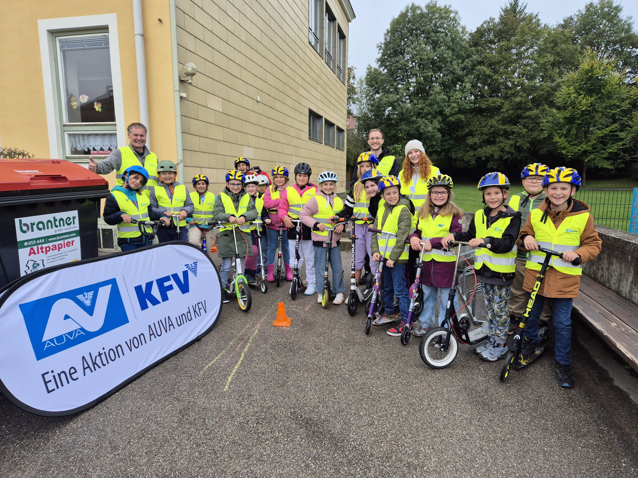 Am 2. Oktober nahmen die 3. und 4. Klasse an einem Roller-Workshop des KfV teil. In einer Theorieeinheit wurden die wichtigsten Verhaltensregeln im Umgang mit dem Tretroller vermittelt. So soll dazu beigetragen werden, dass Kinder mit ihrem Roller sicher unterwegs sind und auf mögliche Gefahren achten.