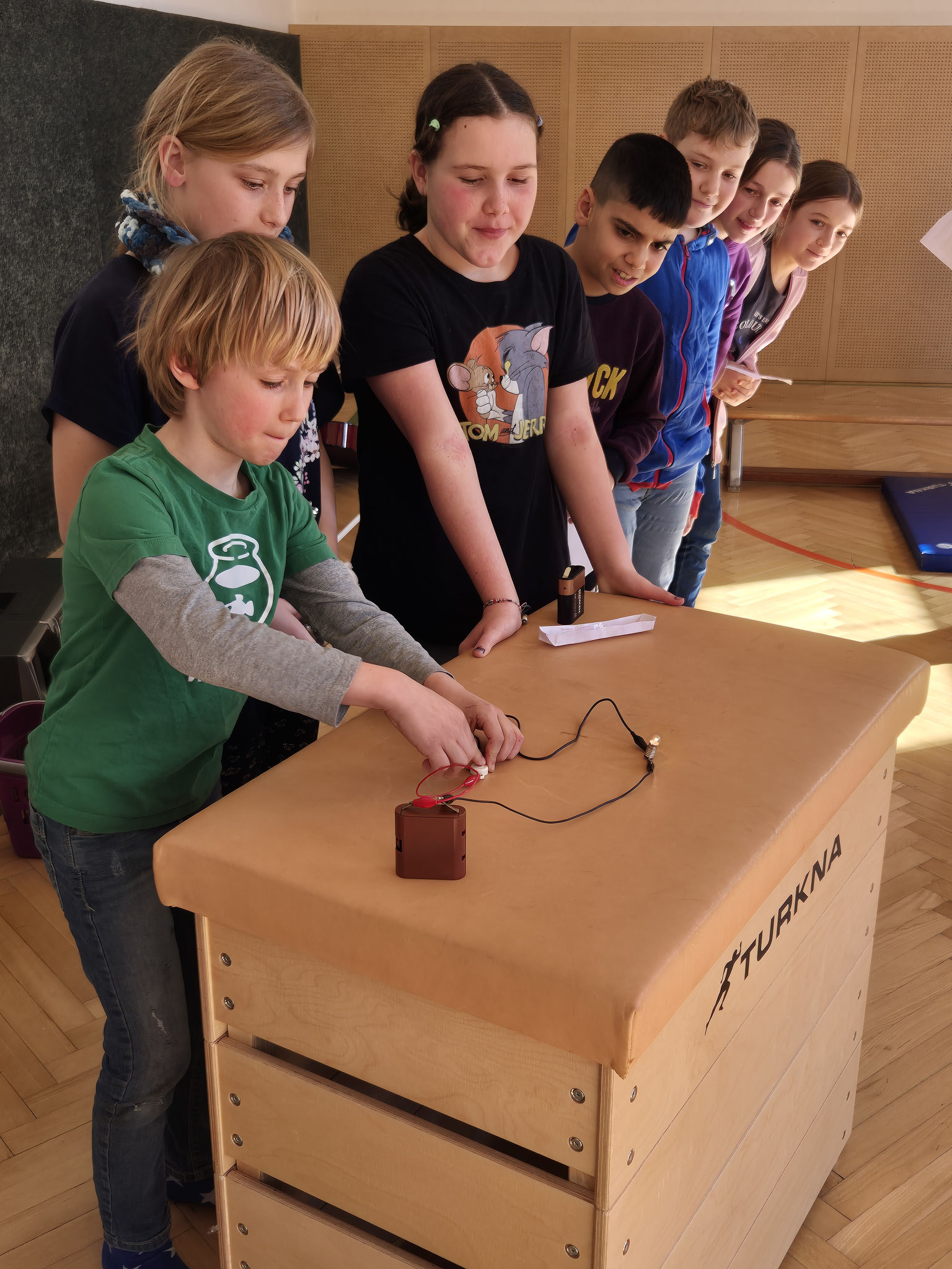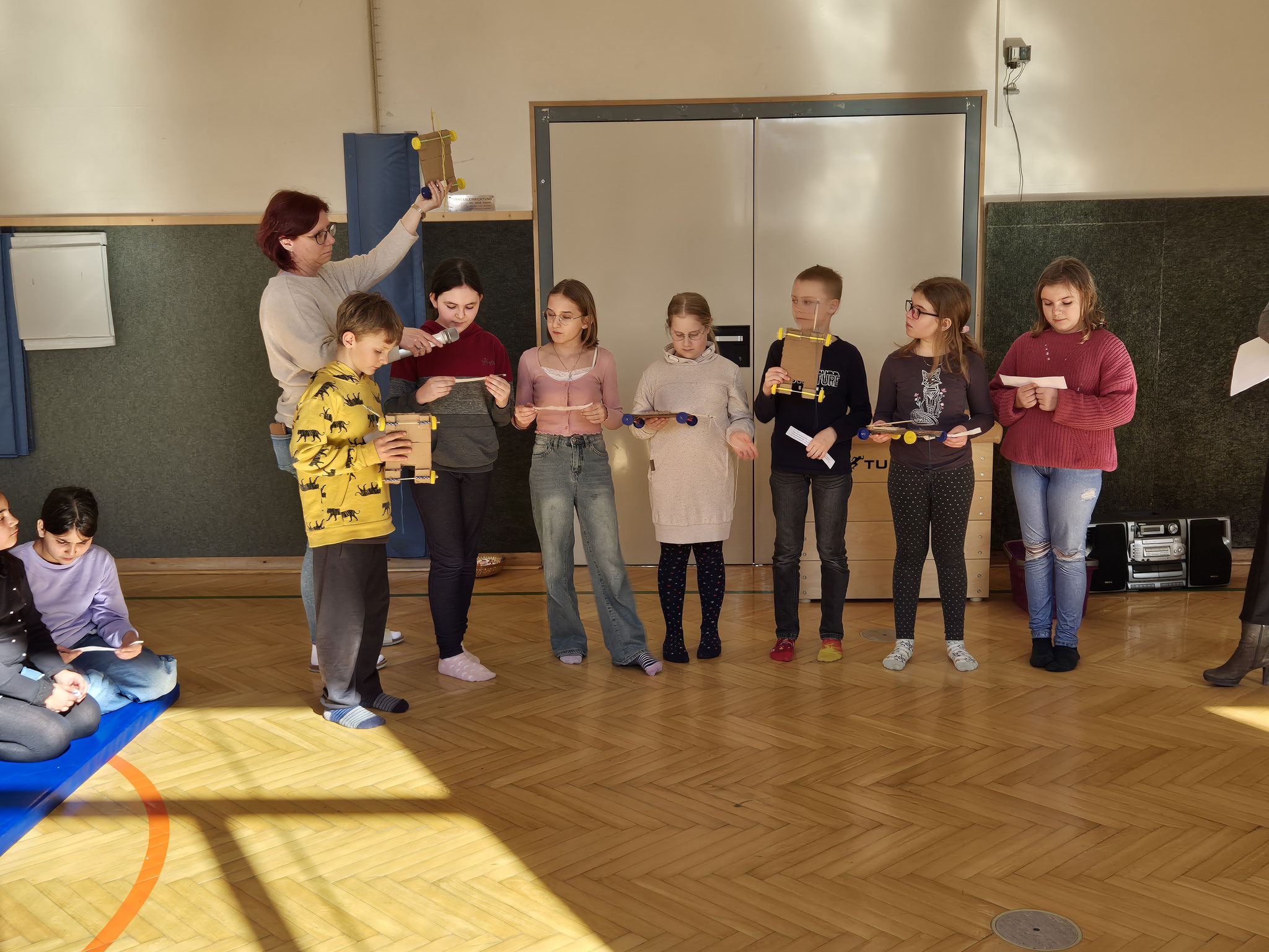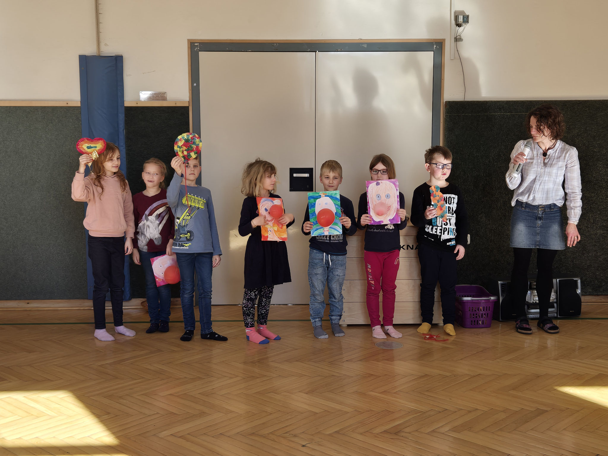 Die 1. Klasse zeigte ihre lustigen Clown-Zeichnungen und kreative Bastelarbeiten zum Thema Fasching. Die 2. Klasse begeisterte das Publikum mit einem mitreißenden Sprechgesang. Spannend wurde es bei der 3. Klasse, die ihr Wissen über Strom und (Nicht-)Leiter teilte und den Stromkreis demonstrierte. Die 4. Klasse erklärte die aktuelle Ernährungspyramide und zeigte, wie eine ausgewogene Ernährung aussehen soll. Kinder der Forscherwelt zeigten und demonstrierten ihr selbst gebautes Mäusefallenauto.