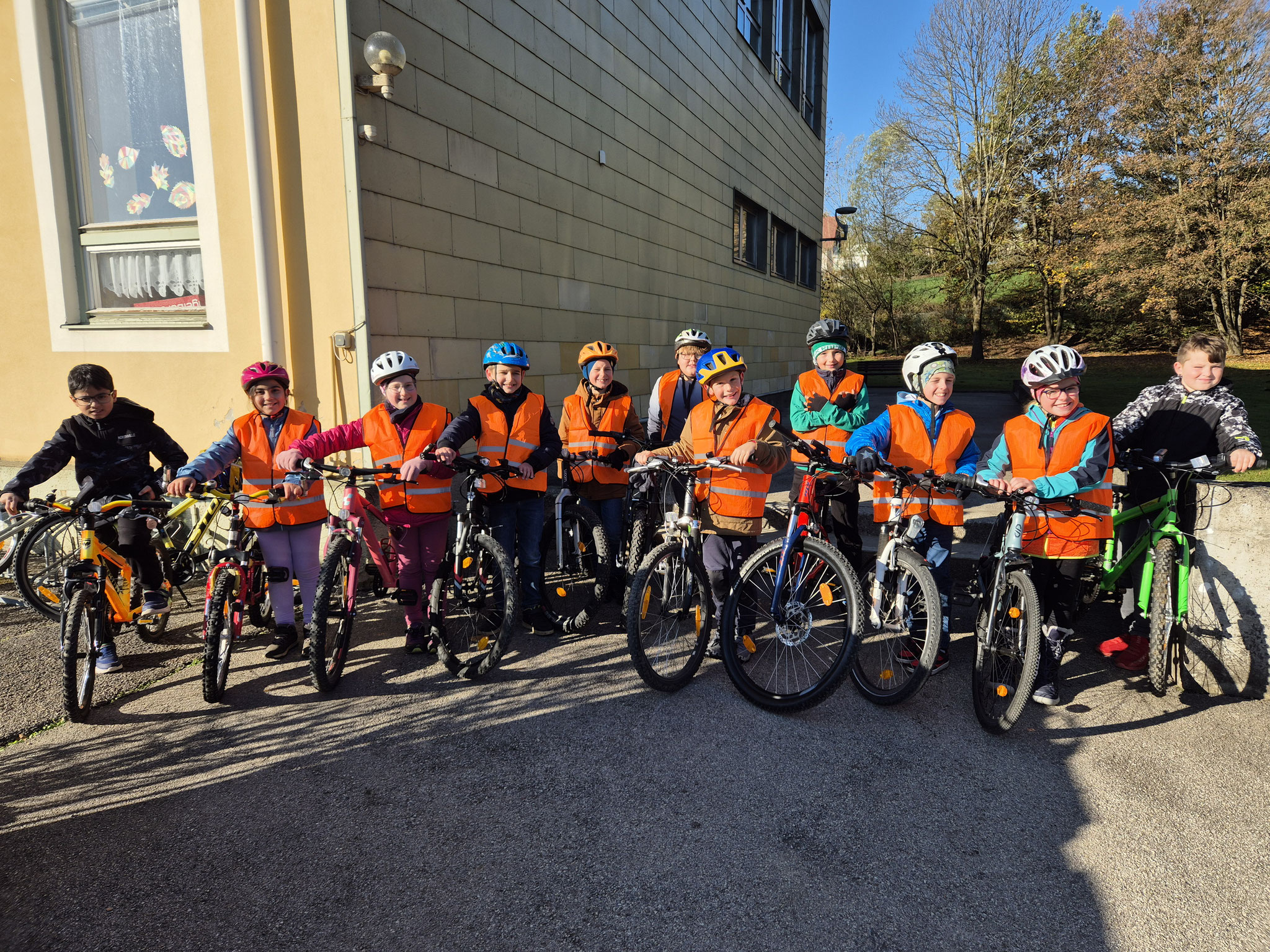 Am 4. November traten die Schülerinnen und Schüler der 4. Klasse zur Freiwilligen Radfahrprüfung an. Für alle, die ihr Können bei der schriftlichen Prüfung erfolgreich unter Beweis stellen konnten, ging es anschließend in die Praxis. Eine vorgegebene Strecke musste mit dem Rad abgefahren werden, dabei waren allerhand Verkehrsregeln zu beachten und umzusetzen. Vielen Dank an die Polizistinnen und Polizisten sowie den ARBÖ für die Begleitung und Unterstützung!