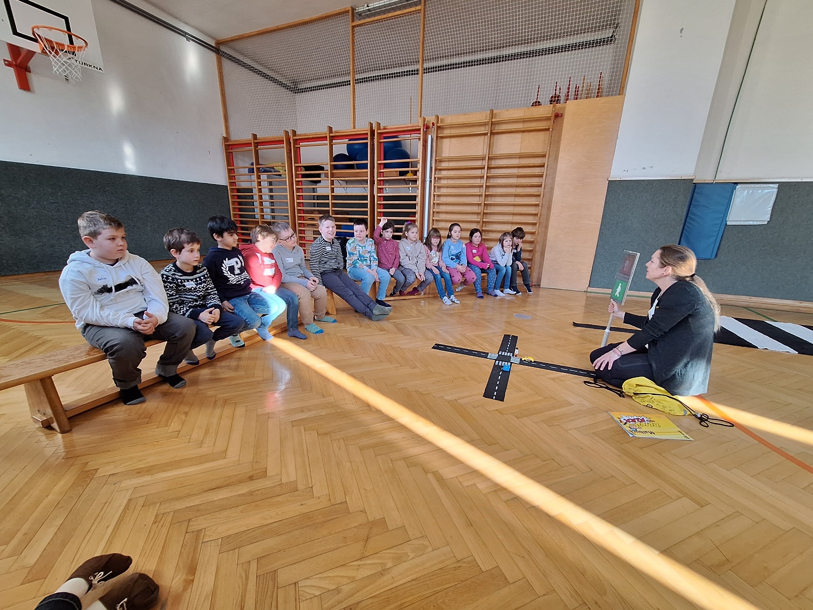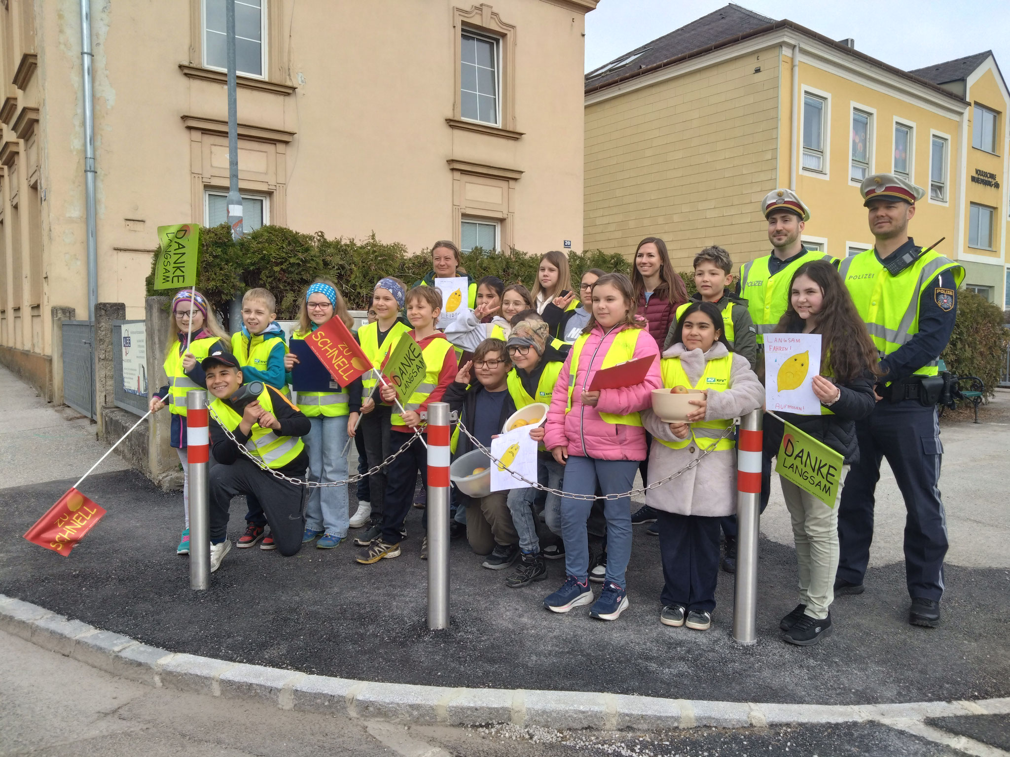 Die 4. Klasse nahm am 28. März an der Aktion "Apfel Zitrone" teil, die vom Kuratorium für Verkehrssicherheit in Zusammenarbeit mit der Polizei durchgeführt wurde. Ziel dieser Aktion ist es, das Bewusstsein für sicheres Fahren zu schärfen – und unsere Schülerinnen und Schüler waren mit vollem Einsatz dabei!