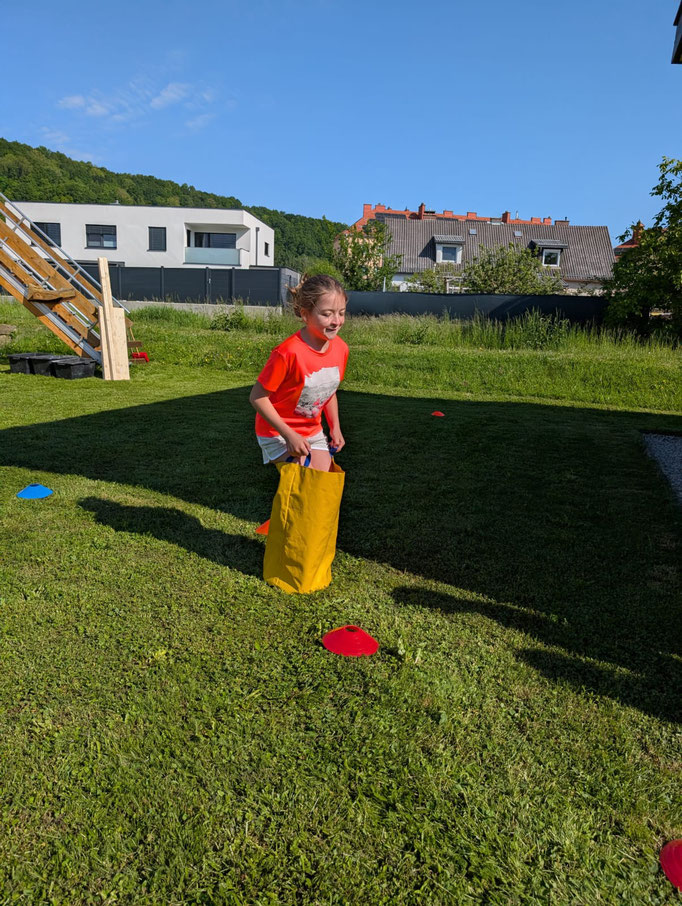 Geschicklichkeit und Schnelligkeit unter Beweis stellen. Für besonders viel Spaß sorgte dabei das Sackhüpfen.