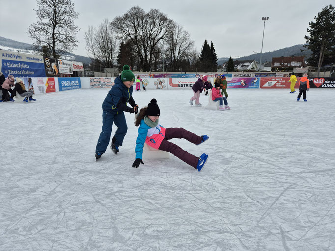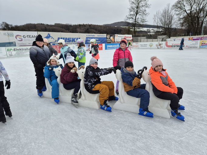 Auch in diesem Winter nutzten die 2., 3. und 4. Klasse den Wilhelmsburger Eislaufplatz. Mit Hilfe der Eisbären machen alle unsicheren Eisläuferinnen und Eisläufer schnell große Fortschritte. Der Spaß darf beim Eislaufen natürlich auch nicht zu kurz kommen.