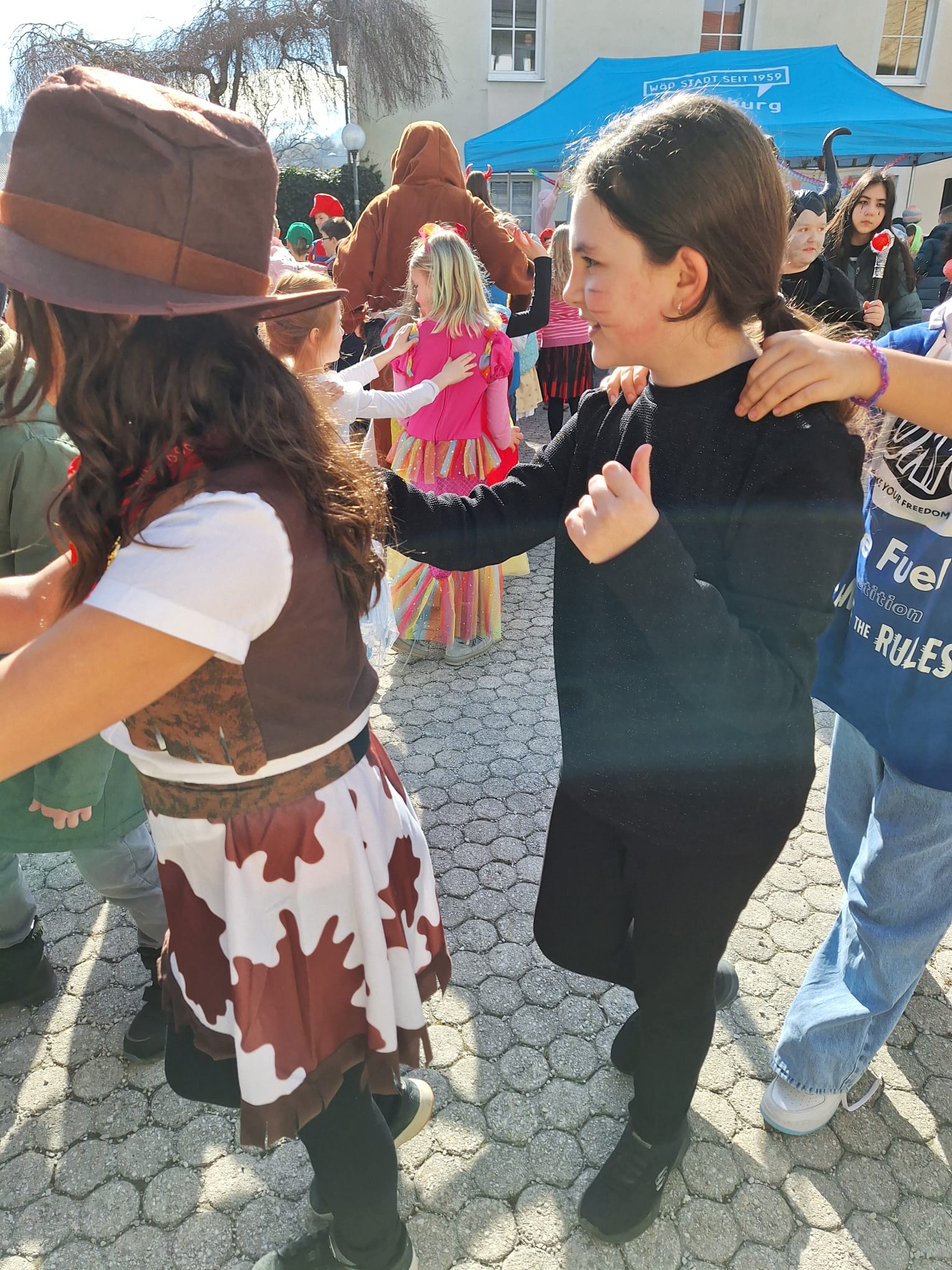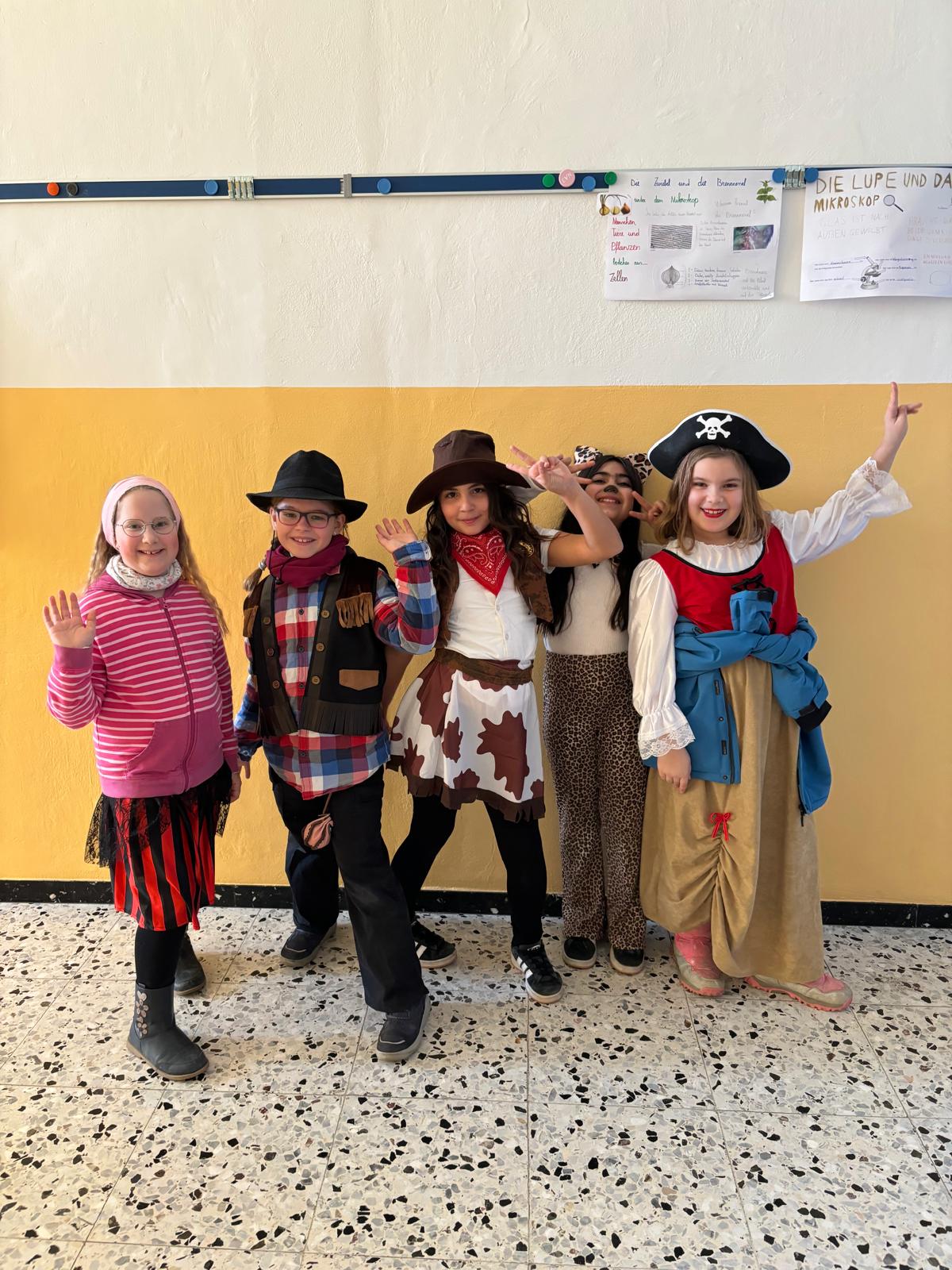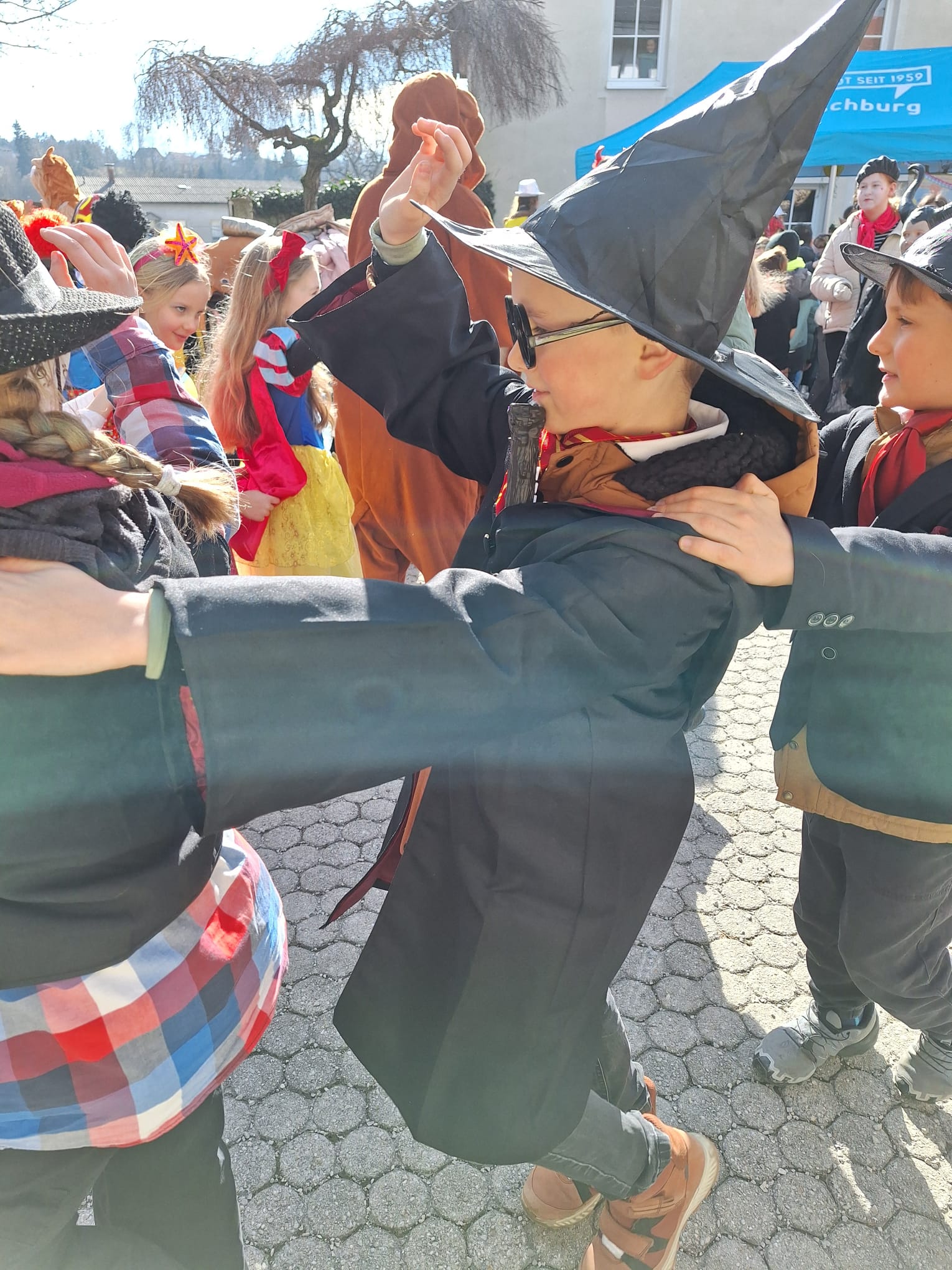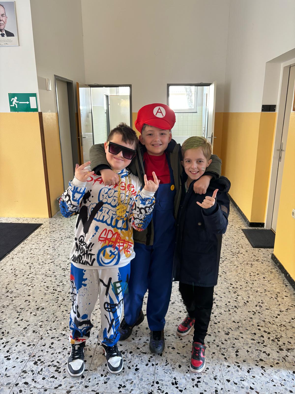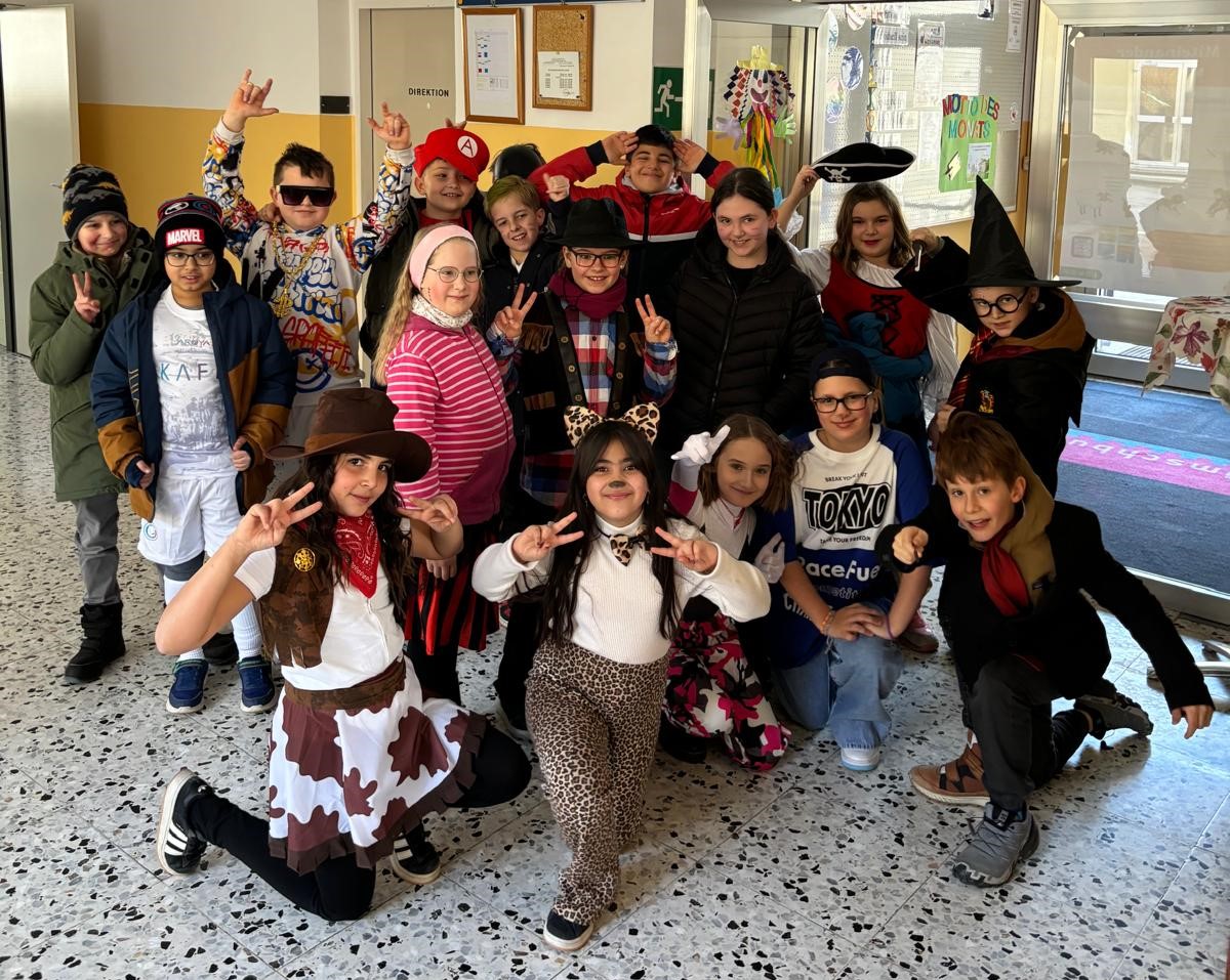 Am Faschingdienstag durften alle verkleidet in die Schule kommen. Neben dem normalen Unterricht blieb Zeit, um den Fasching mit lustigen Spielen und Tänzen gebührend zu feiern. Den Höhepunkt bildete der gemeinsame Umzug zur Gemeinde, wo der Herr Bürgermeister zu einer kleinen Faschingsparty einlud.