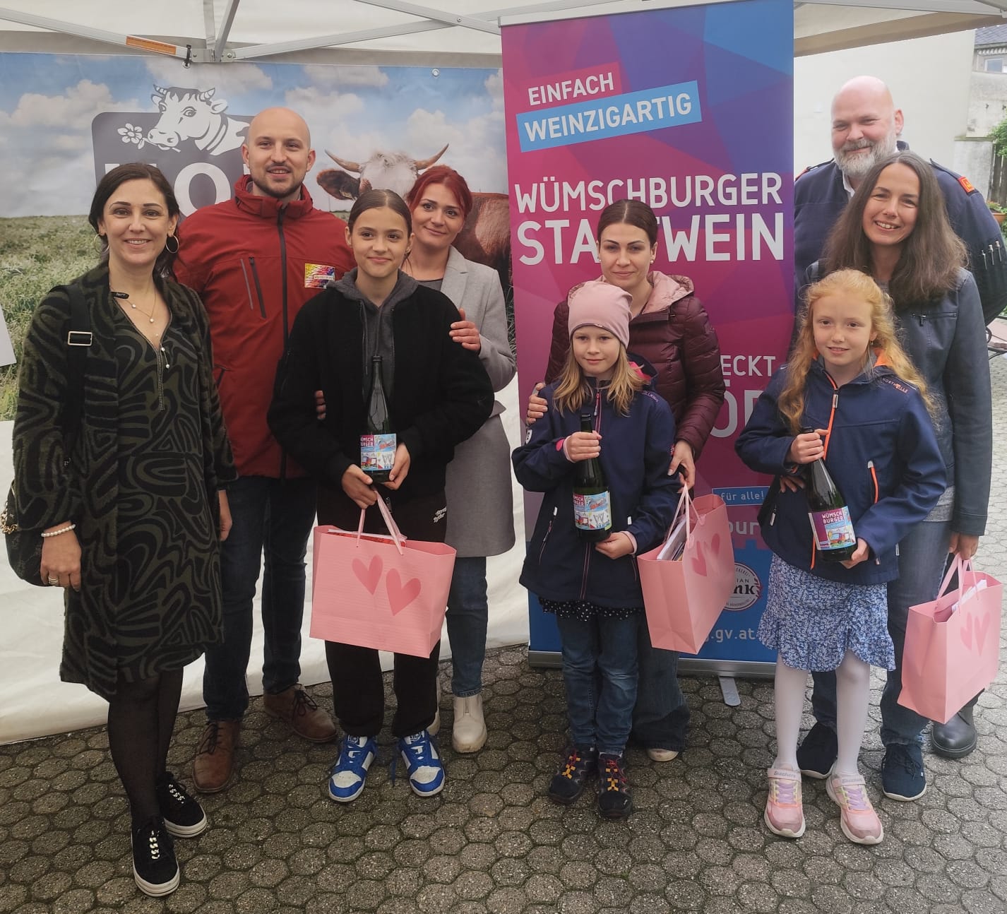 Drei besonders gelungene Werke wurden von einer Jury ausgewählt und zieren nun gemeinsam das Etikett des neuen Stadtweins. Herzlichen Glückwunsch an die diesjährigen Gewinnerinnen Emilia Marek (2a VS Süd), Emma Böswarth (3a VS Nord) und Olga Rud (4b VS Nord). Die jungen Künstlerinnen wurden zur feierlichen Weinverkostung am 22. Mai in den Gemeindeinnenhof eingeladen und erhielten dort einen kleinen Preis.